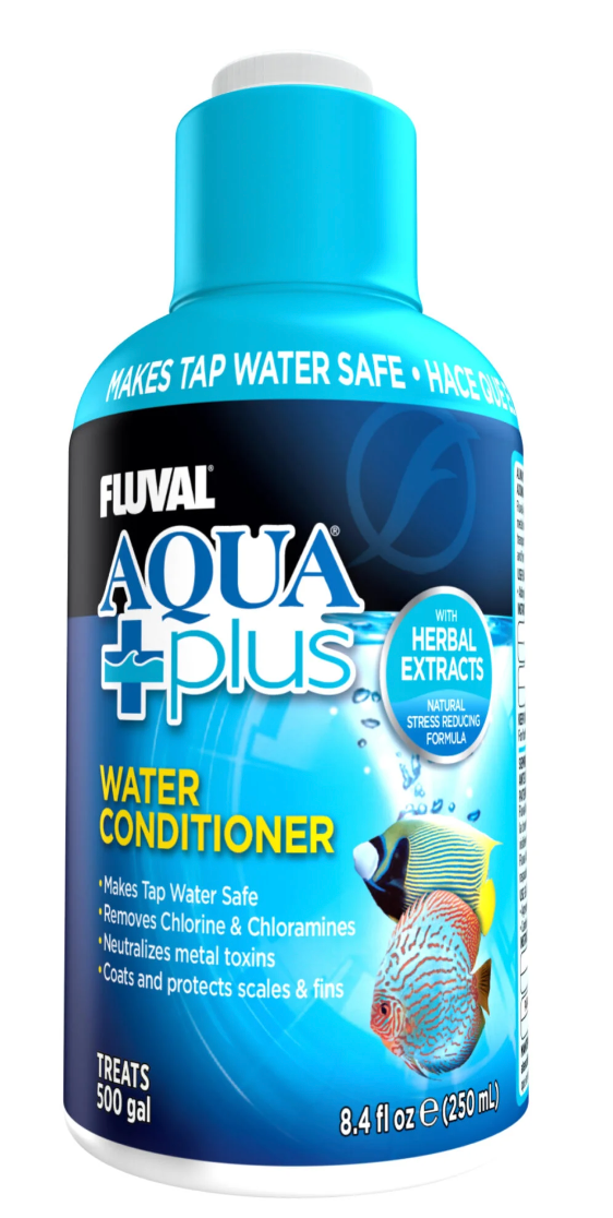 Fluval Water Conditioner makes tap water safe by neutralizing chlorine, chloramine and undesirable metals, which are toxic to fish. Formulated with pure herbal extracts, it also reduces fish stress and protects scales and fins from minor scrapes and cuts.