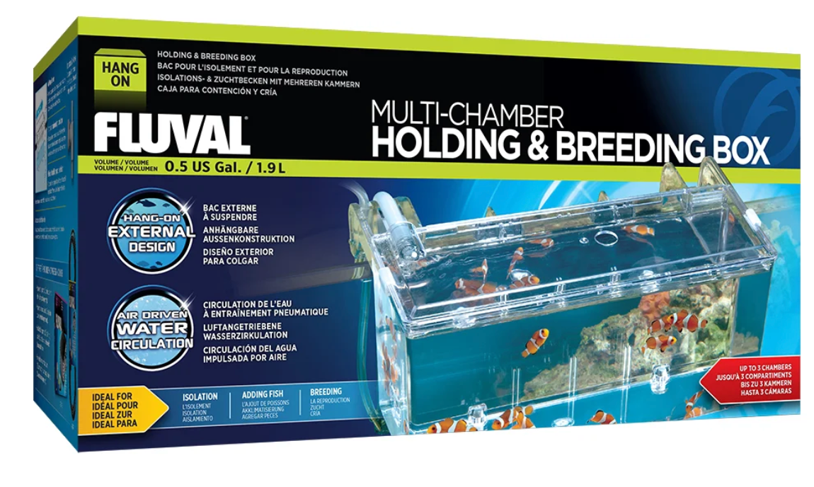 Easily attaching to the side of most aquariums up to 1″ thick, the Multi-Chamber Holding & Breeding Box provides up to 3 separate housing compartments for protecting fry, sick/weak or new fish that require acclimation