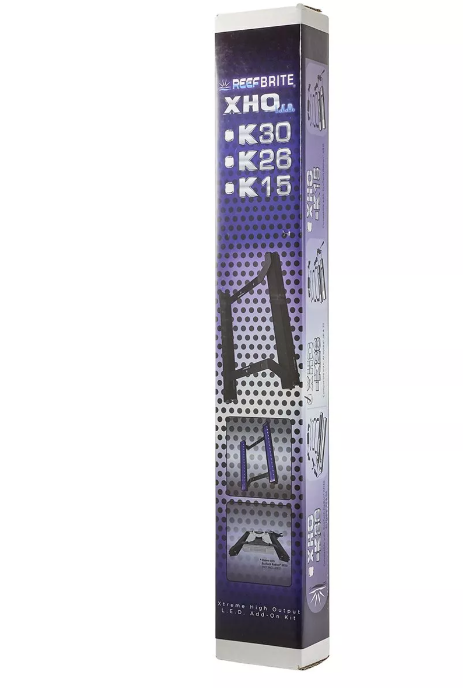 With a combined total of 32-3-Watt LED’s in the Blue and Violet region, the Reef Brite XHO-K30 add-on kit will increase intensity, PAR, color, and pop while improving coverage and illuminating dead spots and shadow areas in your tank. Each kit includes two Reef Brite 15-inch Blue Actinic XHO’s, Reef Brite XHO-B30 brackets, 2-way connector, and power supply. The only additional required components are the primary LED fixture and mounting hardware such as the XR30 Slide Mount.